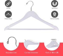 - Add Style With Our Unique Round-Ending Hook: The elegant round ending hooks make our wood coat hangers uniquely elegant. Choose yours in a set of 10, 20, or 80 and brighten your bedroom closet, guest room closet or the kids’ room wardrobe.