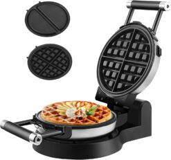360 Rotating Belgian Multifunction Nonstick Baking Waffle Maker with 2 sets of Interchangeable Belgian Waffle and Omelet Baking plates