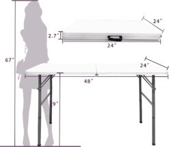 4 FT Folding Table, Plastic Portable Tables for Dining Parties Card Picnic Camping, Granite White