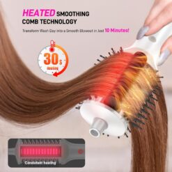 - Effortless Volume & Smoothness: The blow dryer brush effortlessly adds bouncy volume and eliminates frizz in Heated Comb Mode, making it perfect for both freshly washed hair and second-day touch-ups. The round brush hair dryer smooths out bedhead, ponytail creases, and flyaways while efficiently straightening hair—delivering sleek, polished strands without the need for a flat iron.