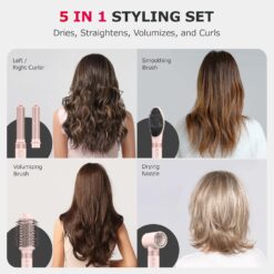 5 in 1 High-Speed Hot Air Styler – Professional Frizz-Free Hair Dryer Brush, Fast Drying Hair Dryer, No Heat Damage Air Styler Wrap – Curl, Volumize, Straighten with Travel Bag (Pink)