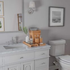 - TIDY DESIGN – Ensure everything on your bathroom vanity is neatly organized by using the bamboo tray to hold a variety of toiletries and beauty or makeup products. Enhance your daily washing regimen with a stylish soap dish and lotion dispenser.