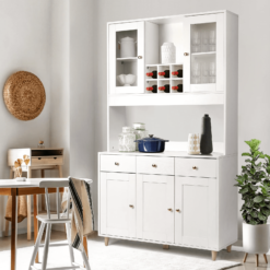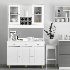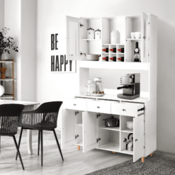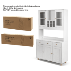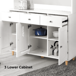 - 【VERSATILE CABINET】: This pantry cabinet includes 5 door cabinets and plus 3 pull-out drawers provide ample storage space to keep mugs, jars, plates and bowls organized. The open countertop is perfect to store your microwave oven, toaster, electric cooker, baking accessories.