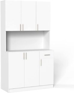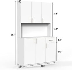 - [White Kitchen Pantry with Hutch for Kitchen]: Kitchen hutch buffet cabinet has tons of storage space to enlarge your storage space. This kitchen pantry storage cabinets is equipped with drawer and 6 cabinets and opening spacious tabletop. This buffet hutch cabinet will provide you various storage needs. The dimensions of this kitchen pantry cabinets is 71”H x 40”W x 16”D (6 doors and 1 drawer).