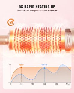 - 1.25″ AUTO-WRAP AIR CURLERS: Our air curling iron features a high-speed brushless motor and innovative air duct design, creating a powerful airflow and pressure. Utilizing the Coanda effect, it generates an air swirl around the curler, which automatically adsorb, wraps and curls your hair, gives you voluminous, smooth, and naturally styled locks with quick and easy styling. The set includes 2 auto-wrap curlers to curl in various directions.