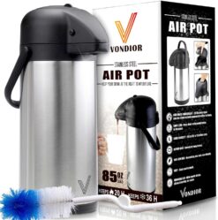 Airpot Coffee Dispenser with Pump – Insulated Stainless Steel Coffee Carafe (85 oz.) – Thermal Beverage Dispenser – Thermos Urn for Hot/Cold Water, Party Chocolate Drinks