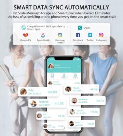 - 4.Syncs with Fitdays APP & Fitness APPs: Download “Fitdays” app on Mobile App Stores.The weight scale syncs the data onto your smartphone automatically via Bluetooth 5.0 BLE. The app provides detailed charts and trends of 16 body composition metrics over days, weeks, months or even years. It can also syncs data to Fitness APPs and share to soical media, which means you can track & manage your health or share your achievements with friends anytime, anywhere.