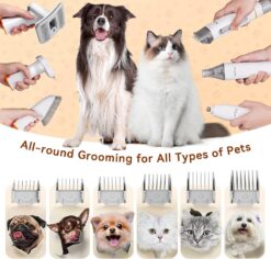 - 【Game Changer with Vacuum Suction】 Are you annoyed at the messy scene caused by the traditional dog clipper? This pet hair remover kit is designed with a powerful vacuum that can capture 99% of hair into the vacuum cup, hair won’t get on your clothes, and no cleaning up after grooming. Don’t worry about hair spreading all over the house again.