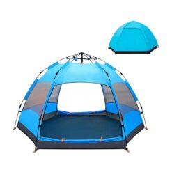 This large automatic hexagonal tent has enough space for you, your family or your friends. This compact tent is ideal for hiking, camping, mountaineering, a kid’s backyard play tent, fishing or shelter at the beach. Lightweight and Versatile, it is a must-have if you plan to spend some quality time with nature.