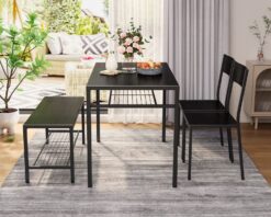 - 【Multifunctional Use】 This is a set of dining table and chairs with bench, which can not only be used as dining table set, but sometimes can be working table at home as well. Storage racks provides spaces for your stuffs, such as books, throw pillows, storage basket, dishes and etc.
