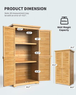 Aiho 63.2″ Outdoor Storage Cabinet with Double Lockable Doors and 3 Removable Shelves – Natural