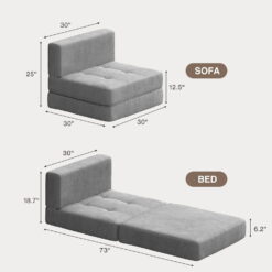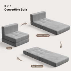 Aiho Chair Bed, Sleeper Sofa Bed with Removable Cover Light Gray