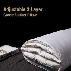 AIKOFUL Adjustable Layer Pillow for Sleeping, Premium Goose Feather Pillow with 100% Cotton Zipper Cover,Queen Size
