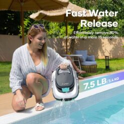 Dive into effortless pool maintenance with the Scuba 800’s hydrodynamic design, propelling it through your pool with minimal power consumption. Unlike bulky corded cleaners, it dedicates maximum power to a full 90 minutes of thorough cleaning for flat above-ground pools up to 860 sq. ft. (80sq. m), 30 ft. (9 m) in length. Experience ultra-portability with its quick drainage system, expelling 80% of water in just 15 seconds for easy retrieval and storage. Stay informed with the Audio Alert System, ensuring a seamless cleaning experience. The dual-drive motors generate 22 GPM (83 LPM), providing powerful suction and filtration for a cleaner pool in less time. Activate with a click, and enjoy auto-parking for convenient retrieval. Cut the cord for a lighter, more portable pool-cleaning solution with the Scuba 800.
