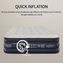 - 【QUICK SELF INFLATING】Air mattress queen with built in pump with Double air chamber,Dual air chambers work simultaneously, Inflates and deflate in just 2 minutes ,all night stability no lost air