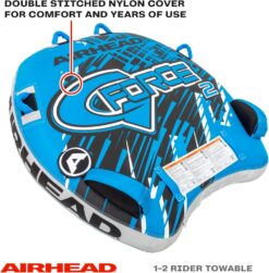 Airhead G-Force Inflatable Towable Tube | 2-4 Rider Models | Dual Tow Points | Full Nylon Cover | Kwik-Connect | Patented Speed Valve | Boat Tubes and Towables | G-Force 2 Rider