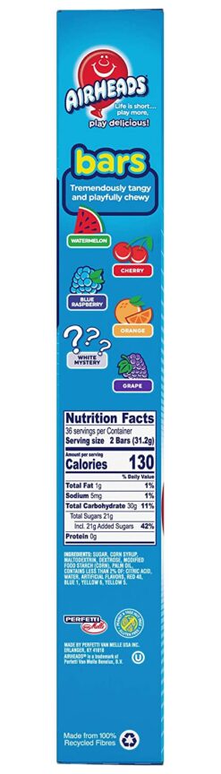 - Unwrap the fun and play delicious with a 36ct box full of only your favorite Airheads individually wrapped taffy bars Blue Raspberry flavor