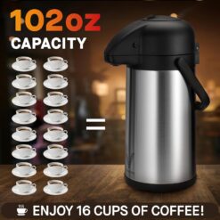 Airpot Coffee Dispenser with Pump – 2Pcs 102 oz Insulated Stainless Steel Coffee Carafe – Thermal Beverage Dispenser – Thermos Urn for Hot/Cold Water, Party Chocolate Drinks