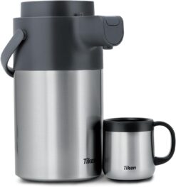 - Effortless Pump Action Dispensing: Simply press down on the pump at top of Tiken coffee dispenser, and the steaming hot beverage pours out. The enhanced pump mechanism and large capacity makes this thermal coffee carafe much easier and more convenient for serving multiple people without a hassle. No mess, no lifting the entire coffee carafe.