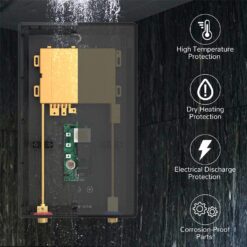 - Safe To Use: With high temp protection, dry heating protection, and electrical leakage protection you can rest easily knowing you have safe, on-demand hot water to use on your schedule. The electric and fluid systems are completely separated to prevent electric leakage and water pipe corrosion.