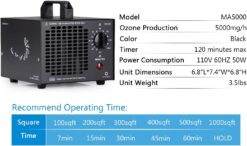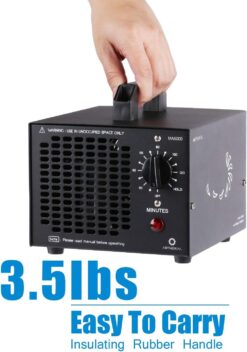 - EASY TO USE: The timer knob can be set up to 120 minutes or you can use the “HOLD” setting to produce ozone continuously. Set the timer, leave the room, wait for the ozone generation to end, and return 30 minutes after the residual ozone reverts back to breathable air.