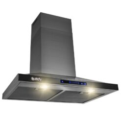 This AKDY 30-inch Wall-Mount convertible range hood brings a unique style that gives a contemporary feel to your kitchen. Easy to use Touchscreen Control, allow you to operate the fan speed up to 3 variants; at top speed brings you a powerful 343 CFM (with a noise of less than 60db) helps keep your kitchen fresh from unwanted odors and smells. 1.5-Watt LED lights provide optimum illumination that brighten up the cooking area. Removable grease filters help trap oil particles and are machine-washable make cleaning a breeze. For ductless recirculating installation, carbon filters kit CF0015 (sold separately).Other useful features: 12-hour clock and 15-minute timer.