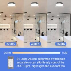 - Decorative – the modern design of Akicon exhaust fan is versatile enough to suit a wide range of bathroom styles, by using Akicon integrated switch with humidity sensor (sold separately), you can effortlessly control the 3cct light, night light and exhaust fan