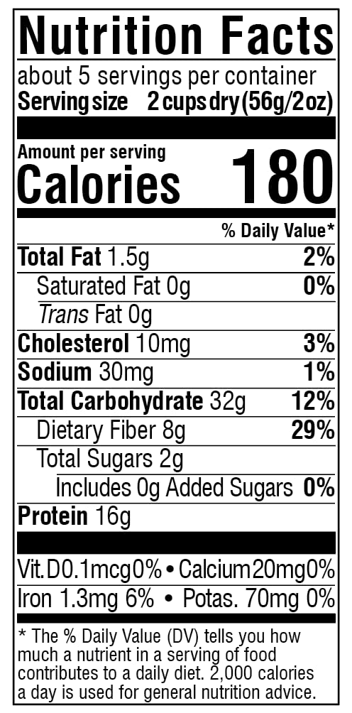 | Serving size | 1 1/2 cups (56g/2 oz dry) |