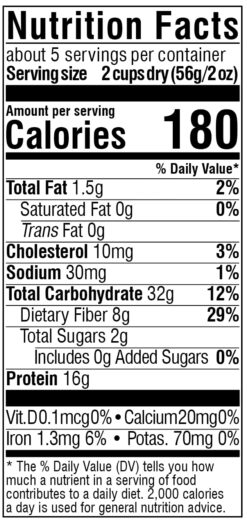- Generous serving size: 2 oz. of dry equals 1.5 cups cooked