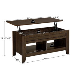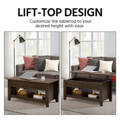 Alden Design 41″ Lift Top Coffee Table with 2 Storage Compartments, Espresso