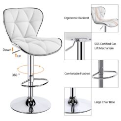 Alden Design Adjustable Midback Faux Leather Bar Stool, Set of 2, White