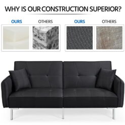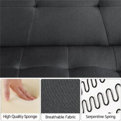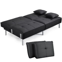 This fabric sofa bed has great breathability and strong durability. Skin-friendly linen cover fabric, ergonomic plush armrests, and a sleek modern design are all add-ins for look and comfort. This skin-friendly fabric is easy to clean. The futon comes with two pillows, which have machine washable covers you can remove with a smooth zipper.