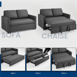 This pull-out loveseat is the perfect piece for your living room or bedroom. Not only is it durable, comfortable, and stylish but it also can function as a place for overnight guests to sleep! The soft linen fabric and thick foam filling make this the perfect place to cozy up. The stury and durable plywood and metal frame guarantee that this loveseat will last a long time. Its transitional design blends in perfectly with any and all home decor styles. Simply pull on the base of the love seat to expose the comfortable extension and make this convertible loveseat into a bed! Simple assembly is required and detailed instructions are included.