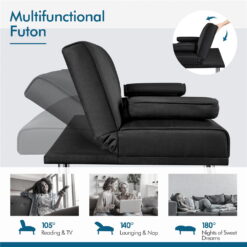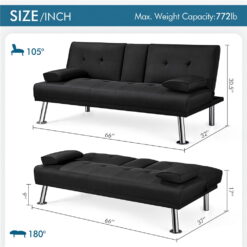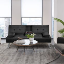 This futon sofa bed is made of high quality soft fabric and iron material. It is sturdy and durable, guaranteeing it will last a long time. This home recliner couch can be transformed into a quick guest bed for visitors by removing the armrest and reclining the back rest. The futon sofa bed is designed for entertainment and function. The ergonomically designed sofa bed has a middle armrest that folds down with two cup holders, so you and your friend can relax and enjoy a couple of beverages. The sofa bed is perfect for small spaces and well-suited for any apartment, studio or college dorm, living room, bedroom, or den as an extra guest bed. Simple assembly is required and detailed instructions are included.