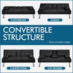 Alden Design Modern Fabric Reclining Futon with Cupholders and Pillows, Black