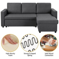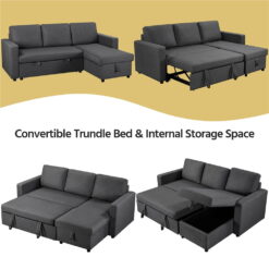 Alden Design Sectional Sleeper Sofa with Pull Out Bed and Storage, Dark Gray: