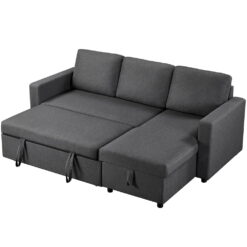 Alden Design Reversible Sectional Sleeper Sofa with Pull Out Bed and Storage, Dark Gray