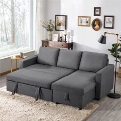 The reversible sectional sofa is crafted from a sturdy engineered frame, 100% polyester upholstery, foam fill, and metal spring for enhanced sturdiness and durability. The chaise can be placed on either the left or right side of the loveseat to meet different requirements of space. The trundle sleeper mechanism hidden under the loveseat helps the sofa easily pop up to a comfy double/full bed for 2 sleepers. The two strap handles and bottom wheels make for fluent and effortless operation. The clean-lined silhouette works harmoniously with the neutral-colored upholstery to sport an effortless low-profile look. The clean-lined silhouette works harmoniously with the neutral-colored upholstery to sport an effortless low-profile look. This sofa bed is a welcome addition to most home styles.
