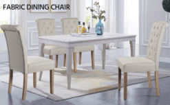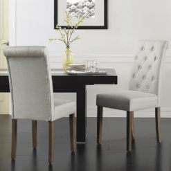 These set of two upholstered dining chairs are made of high-quality, durable materials ensuring long-term use. With a padded and cushioned seat and backrest, you can sit comfortably without any worries of aches or pains. The overall wooden frame provides strong support with a maximum weight capacity of 275 pounds. The simple and fashionable chairs adds a sense of elegance to any room, and the modern design seamlessly matches with any home decor style. Simple assembly is required.