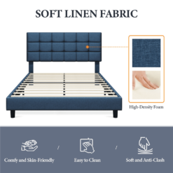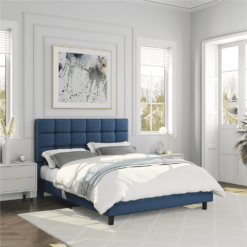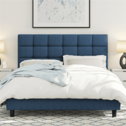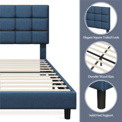 Alden Design Upholstered Tufted Platform Full Bed, Navy Blue