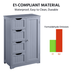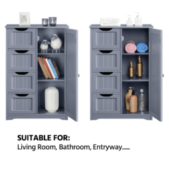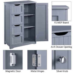Alden Design Wooden Bathroom Storage Cabinet with 4 Drawers & Cupboard, Gray