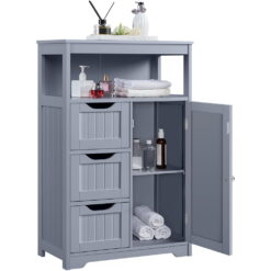 Alden Design Wooden Floor Storage Cabinet for Bathroom, 22″L*12″W *34″H, Gray