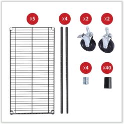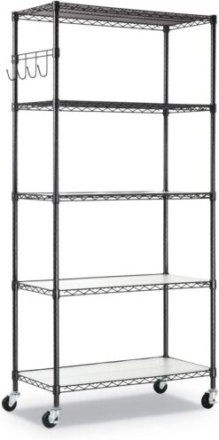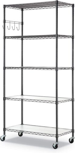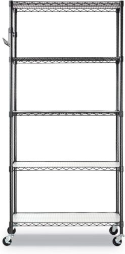 Alera 5-Shelf Wire Shelving Kit with Casters and Shelf Liners, 36w x 18d x 72h, Black Anthracite