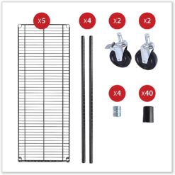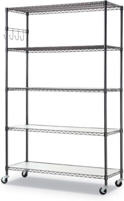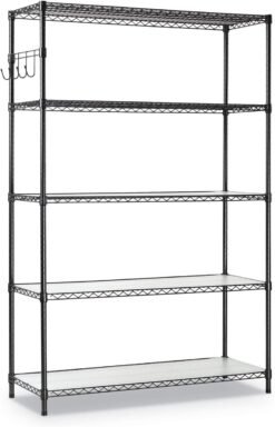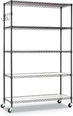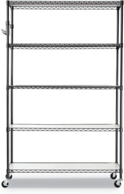 Alera 5-Shelf Wire Shelving Kit with Casters and Shelf Liners, 48w x 18d x 72h, Black Anthracite