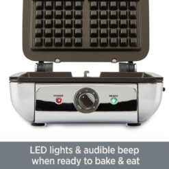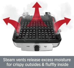 - Automatically alerts you when you need to pour batter or when your waffle is done