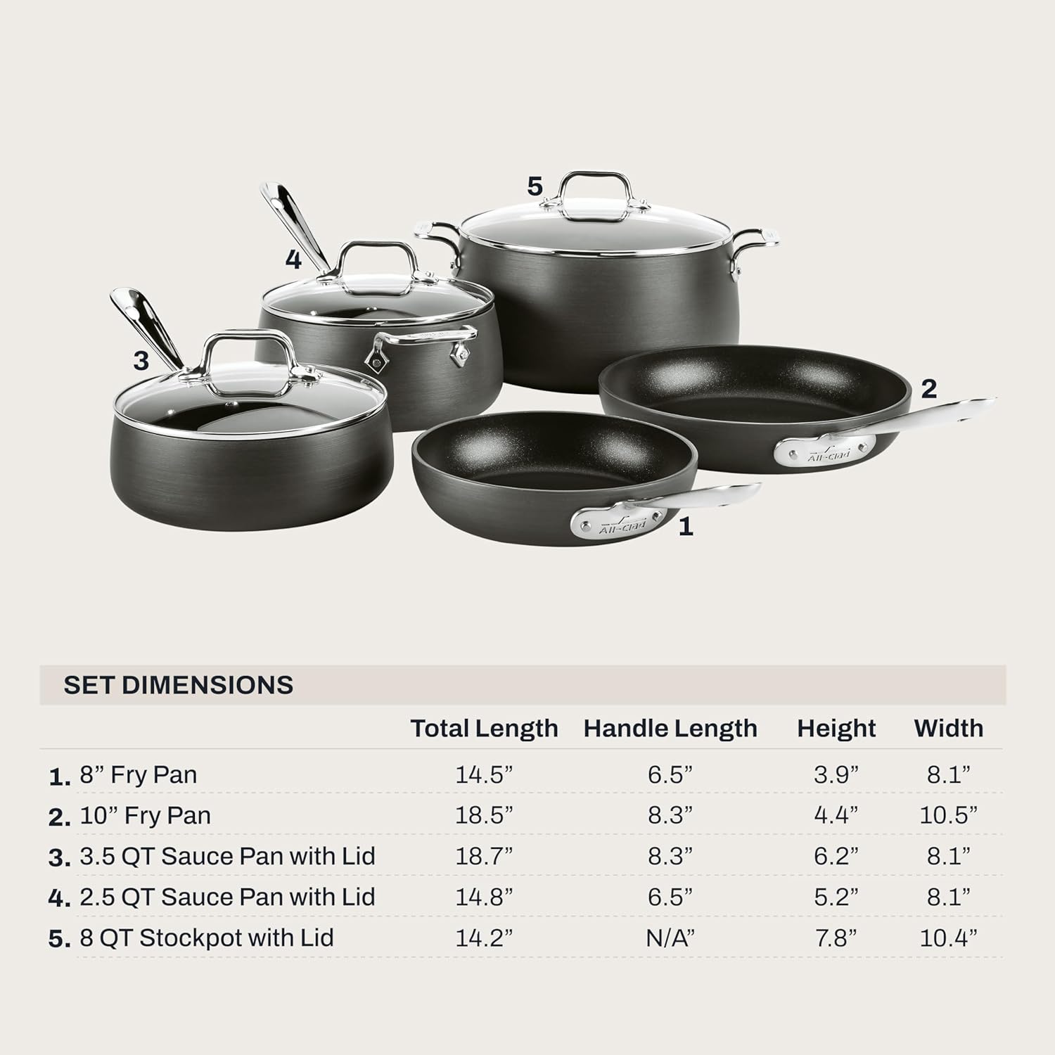 All-Clad HA1 Hard Anodized Nonstick Pots and Pans Set Non Stick Cookware Sets, Oven Broiler Safe 500F, Black