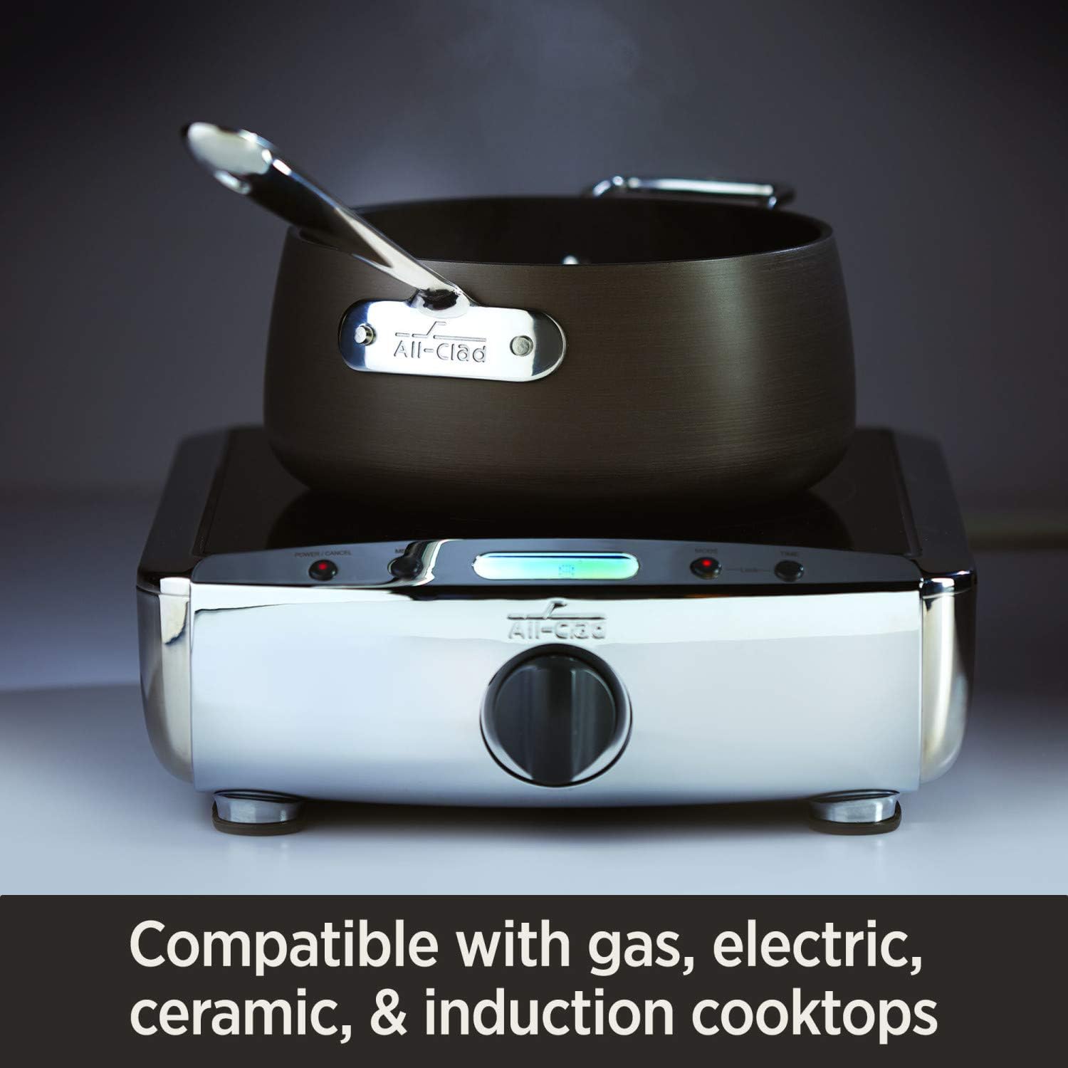 All-Clad HA1 Hard Anodized Nonstick Stockpot 4 Quart Induction Oven Broiler Safe 500F, Lid Safe 350F Pots and Pans, Cookware Black