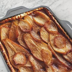 All-Clad Pro-Release Bakeware is designed for the baking enthusiast looking to satisfy a sweet tooth without the hassle. Cakes easily flip out of pans and cookies glide right off sheets due to the durable ceramic-reinforced nonstick finish, specially designed for baking. Other features, like oversized handles for safe transport in and out of the oven, heavy gauge aluminized steel for even browning throughout each baking pan, and rounded corners to prevent over-baked edges, were added with the passionate home baker in mind. Bake, release, and cleanup without worry with Pro-Release Bakeware.