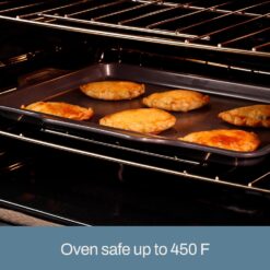 - Easy Care- Oven safe up to 450°F. Dishwasher Safe. To preserve the nonstick quality over time, we recommend using silicone, nylon or wooden utensils and washing your bakeware with a soap and sponge. Limited Lifetime Warranty.