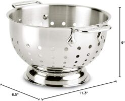 All-Clad Tools and Accessories Stainless Steel Colander 3 Quart Strainer, Pasta Strainer with Handle, Pots and Pans Silver